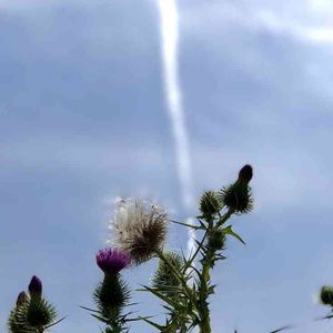 💙゚・*:.。.空と植物.。.:*・゜💖 こんばんわ❣︎( *ˊᵕˋ)✩‧₊ 💕今年初めてアザミがふわふわの綿毛になると知った❣️ 🌬風が強い日〜 種がたんぽぽみたいに飛んで行いってた❣︎゚ +.(゚∀゚︎)゚+. わぁ♪︎