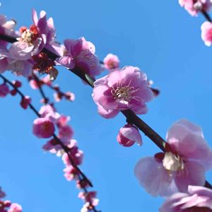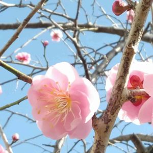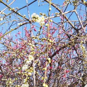 我が家の梅 Part2 枝垂れ梅 青空に良く映えました 紅白の梅 で おめでたそうですね💕