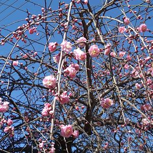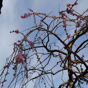 散歩: 垂れ梅の花 この垂れ梅今年思い切りよく枝をカットしてあって今年は垂れてなかった。 ちょっと残念