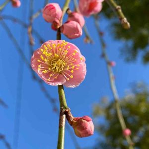 一輪咲きました。 大好きな友だちが亡くなった時に植えたしだれ梅 去年より少し遅く咲きました。誰かの希望になりますように。一刻も早く戦争が終わりますように。