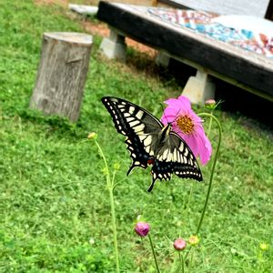 7月にキアゲハの幼虫がパセリに居たけど この子かな?? 最近は咲き出したコスモスをハシゴしています😊