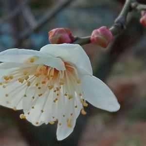 寒い中🤍梅の花が一つ咲いて頑張ってました✨🤍✨ 沢山の蕊が綺麗です✨ 今年も梅の実が沢山出来るかなぁ~ 楽しみです🎶(*´▽`) 🏷白い水曜日♡ 参加させて下さいね🎶