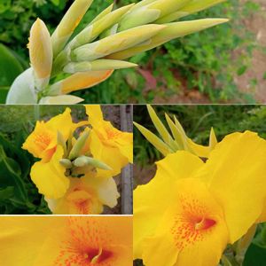 カンナ🌿💛✨ 蕾からあっという間に花が咲き鬱陶しい梅雨空を吹き飛ばしてくれてます💛✨ 🏷月曜日にビタミンカラー💛
