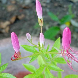 ピンクノウゼンカズラ💗 やっと蕾が出来ました🌿✨ 「ピンクノウゼンカズラ」は南アフリカ原産ポドラネア属の落葉つる性木本で「ノウゼンカズラ」は中国原産ノウゼンカズラ属だそうです🔍 🏷金曜日の蕾たち🙇♀️