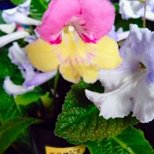 ストレプトカーパス主にフォーチュンバタフライ 青(右下)が咲いてきてフォーチュンバタフライが3種(ピンク、パープル)に成りました。 後赤が咲かないかな〜🥰