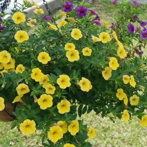 おはようございます(*´︶`*)❀ カリブラコア.·˖*·♡ モリモリになりました~🥰 黄色と紫の二色ですが圧倒的に黄色の方が目立ち大きく育ってる💛😄 楽しい週末を。.*°♬