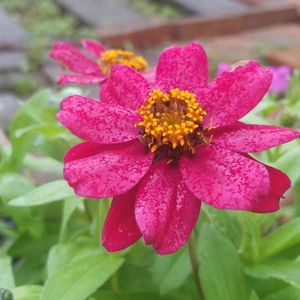 雨上がりの朝です ジニア.·˖*·♡ 暑さに強く花期が長いのでずっと楽しめる🤗 今年は濃いピンク色を迎えました🎶
