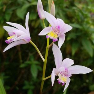 おはようございます❀.(*´∇`*)❀. 白花姫シラン.·˖*·⑅♡ 咲きました~💕🤗 うっすらピンクに濃いピンクのリップをつけたような可愛いらしい花ですღ˘◡˘ற⋆*:."