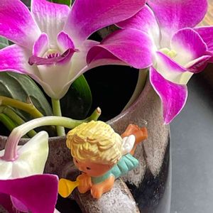 これからの季節に頼りになるデンファレで、エンジェル祭りに参加します👼 うなじ方面から見ると花弁がダンボの耳みたい。👼くんのラッパを聞いてるようなうなだれ加減にズッキュ〜ン💘