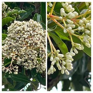 左の画像をGoogleレンズにかけたら、パチパチとなかなか回答しないので、(判断が遅い💦)と焦れてたら、急にブラックアウト。 すみません、ヒト(AI?)のこと言えないのに😂 右だけ見るとネズミモチに見えるのですが、左のようになるまでの花の集団を見たことなく、迷ってます😓 カナイさんからサンゴジュではないかとコメントいただきました。 実を見たことないのでおもいうかばなかったのですが、たしかにそちらだと納得できます☺️