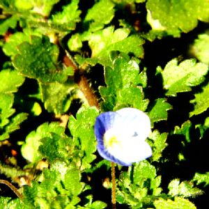 今朝の散歩道です。 散策中に、草地に咲いている、 オオイヌノフグリを 見つけました。 春が1歩近付いてきた様です。