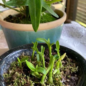 おはようございます☀ 我が家のデンロビウム エンジェルベイビー グリーンの根っこがあちこち出てきたので、 ミニを作ってみました。 育つといいなぁ、、、、☺️