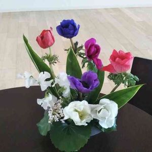 今週の職場のいけばな💐 コロナの影響で一部在宅になりそうですが出社できる時は花活は続けていきたいです😣