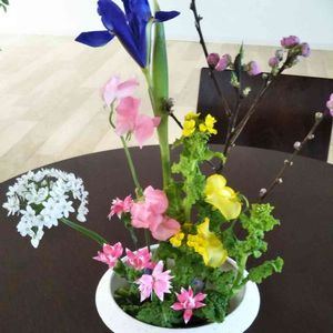 先日のいけばな、フリージアが開いて雰囲気が明るくなりました。フリージア、大好きなお花です💕
