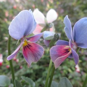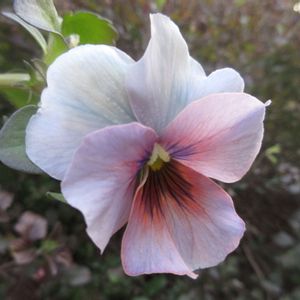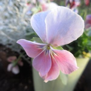 1月、今年になって初めての投稿のビオラは咲き終わりにこんな優しい色になります。これは花びらが一枚多いですね。