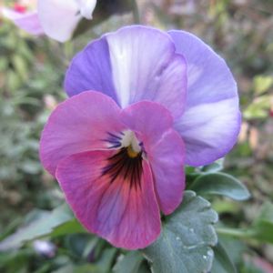 一見、普通の紫のビオラですが、近付いて見ると複雑な素敵色✨