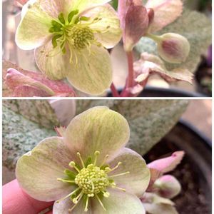✨戦利品 クリスマスローズ😊その1 カラーリーフ クリスマスローズ リヴィダス カレードスコープ エメラルド クリスマスローズを置いていた山野草のお店の人に声をかけられ… ( *¯ ꒳¯*)とってもとっても良くしてもらいました👛 葉っぱもですが、グリーンのガク片にも斑が入っていて可愛いくて〜(*´°`*)💕 下の画像の方が実際の色に近いです
