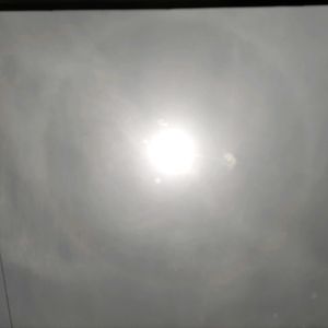 こんにちは☀昼前の11時41分頃の上空です。 明日から少し曇ってくるので、眩しくて写るか心配でした。ハロ現象ですね!。ガ―デンの芍薬とハナビシソウが綺麗に咲いてます。薔薇も綺麗に咲いてます。又picします。