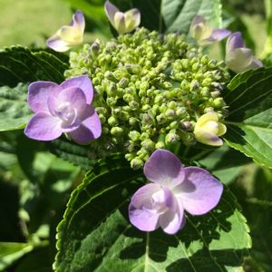 アジサイ 城ヶ崎💜 ガクの装飾花をよく見ると 青いスジが確認できます😳✨ 知らなかったなー😳✨ シンプルな八重の薄紫色だと思ってた。