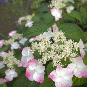 今日、2つめの投稿です。 昨日、友人と、牧野記念庭園へ♪ 雨でも花たちは輝いてました。 ① ヒメアジサイ 3年前に高知の牧野植物園から、里帰りしたんだとか。 濃い青色が綺麗ですね。 ② ベニガク これから装飾花が色づいていくようです。 ③ ウズアジサイ 別名は、お多福アジサイ、 ポップコーン……等。 ④ アジサイ『ナデシコ』 装飾花も大きいけど、 葉っぱも大きかった🌿 ⑤ 品種が分からないけど、 色合いが素敵♡