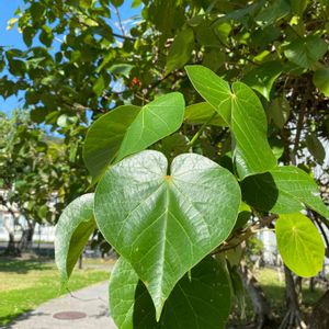 こんにちは😊 今日も朝から晴天☀️✨ 日向に座るとジリジリと肌が焼けてる感じ😆 写真はテリハハマボウ🤗 青空の下でハートの葉っぱがイキイキしています💚✨