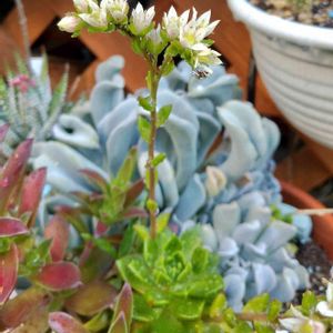 朝晩少し涼しくなってきたなぁと思ってたけど、、、また蒸し暑いやんっ!! 多肉ちゃんもバテバテです😩 ふと、見ると、こんなお花が咲いてました! トプシーダービー? 2年ほど植え替えもしないでちっちゃな寄せ植え鉢の中でよく頑張りました️💪✨ 虫がよく付くけど、花はキレイ✨ こんな喜びがあるので多肉を育てるの やめられない😅
