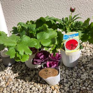 こんにちは〜🤗 ラナンキュラスラックスが我が家のお花ちゃん達の仲間入りしました〜🌸 オニヅカのネット通販サイトから3株購入しました。アリアドネ以外欲しい品種は在庫なしだったので色味を連絡、店舗の方で選んでいただいのはウラノスとハリオスです。実物見たら私好みの色と形でした🥰3株ともツヤツヤ・ピカピカ✨🌸✨株もしっかり☘️さすがオニちゃんです👏👏👏 店舗に行くと衝動買いするしコーヒー飲んじゃうし時短で都市高使うし諸々考えると送料払った方が安く済みました💴😆😆また利用しよ💕 一足先にホームセンターで購入したムーサは赤からシルバーに変わると聞いていましたがゴールドっぽい色になりこちらもピカピカです🌺✨ これからこの4株が我が家の環境でどんな色味に変わるか楽しみです❣️ 相変わらず晴れの日が続かずお花ちゃん達の成長に差が出てきました💦日照不足⁉️遂にハイポネックスの⚡️ストレスブロック⚡️を与え始めました。今後の成長に良い効果が出ますように😌