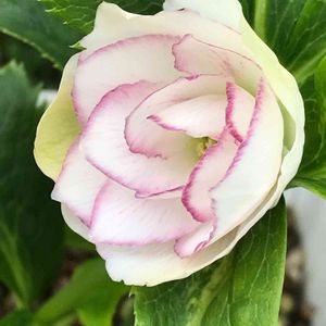 おはようございます😃 クリスマスローズのシングル🤍❤️ 伊勢みやび 眉引きだったかな… 2年目です。 八重咲きのクリスマスローズの白を 抜いて開き始めました💕💕 可愛い♡♡スキ