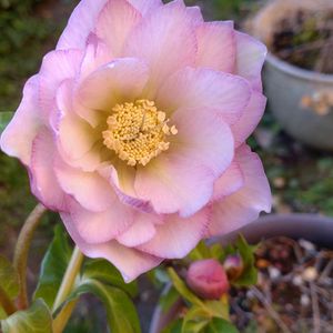 クリスマスローズ 雅 琴音 去年苗で買って、初開花です。 蕾のときは、濃い色であれ??と思ったけど、花は淡いピンクでした。よかったー~~