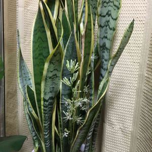 おはようございます😃 これは、うちのでは、ありませんが、ネットで調べたらサンスベリア、お花が咲くそうですね。こんなお花❣️ とても良い香りがするらしい✨😍 それには、先ず株を大きくする必要があるらしいです。 冬は休眠期に入るのでお水は、控えめ、春と秋に固形の肥料をあげたら良いらしいです。それとカーテン越しの日光も大切だそうです。それらが重なって運が良いとお花を見られるらしいです。 うちのもいつか咲いてくれるかしら⁉️😄🎶