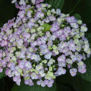 (お多福アジサイ?オカメアジサイ?)何故か1本だけお多福に普通の額が混じってる😥