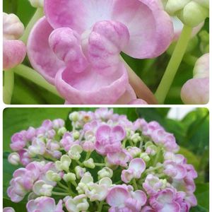 おはようございます😃 同じ木から出ているのに片方は花びらが くるんと巻いていません。 本当は、上の花のようになります。 でも、可愛いウズアジサイ💕