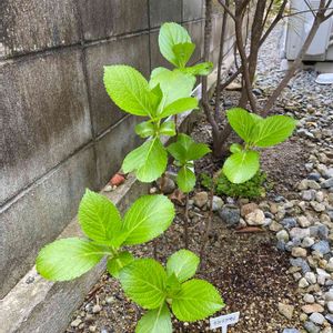 さっきのは普通のアジサイ。こっちはウズアジサイ。今年も芽が出てきた。病気にならないように。