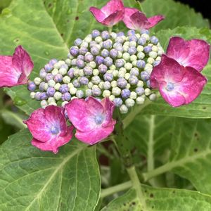 ガクアジサイ 可愛く咲きました♪ ウズアジサイは 色づき始めたところです☺️