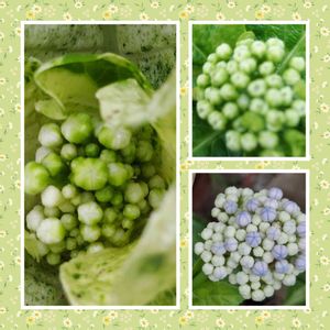 おはようございます😊 我が家の紫陽花3種💖 ⬅️スフレさん♡ 班入りの葉っぱが素敵です🥰💕