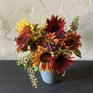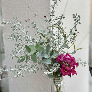 *キンギョソウ ミニチェリーコーラ *アルテルナンテラ ローザ *オレアリア リトルスモーキー *ユーカリ グニー シルバーリーフに紅色のキンギョソウを入れると、一気に秋らしいシックな雰囲気になります🥰