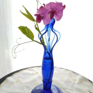 今日の庭から 宿根スイートピーが咲き始めました🩷 庭の花を生ける✊ 1)2)宿根スイートピー ブルーの花器は硝子製ですが、出自不明です😅 3)4)庭の宿根スイートピー クマバチがなかなかどいてくれません😅 この宿根スイートピーは、数年前に見切り品50円で購入したものです。 こんなに丈夫ではびこるとは🤭