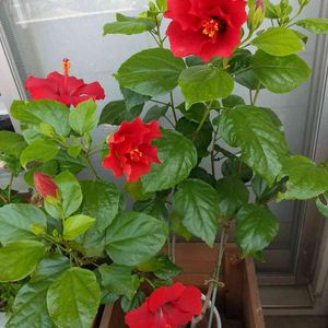 ハイビスカス 今年は次々とよく咲きます🌺🌺🌺 高くなりすぎないように、一度かなり短くカットしたのが良かったのでしょうか✂️