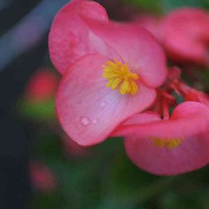 朝は雨上がりの曇り ベゴニアも水滴を 可愛らしくつけている。