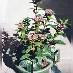 ビバーナムティヌスをお出迎え🥰白い小花のあとは青い実と楽しみたくさん!