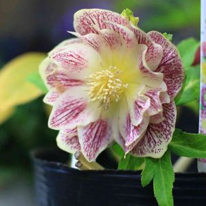 今季初お迎え✨ クリスマスローズ 多弁系 曽田園芸さん✨ 辛口園芸店主ご夫妻が、雪のためお店は4日程臨時休業し、トラック飛ばして🚚曽田園芸さんから直接仕入れてきてくださった🎶 なんと、今年も利休を入荷😳お高いので、ため息つきつき眺めただけです。写真撮ったけど、お値段にビビったためかブレてた🤣 そしてこの子💕多弁の一枚一枚に絞り模様が入り、上品にフリルがかり…✨ずらーっと並ぶ中で、一目で私の心を、ずきゅぅぅぅんと撃ち抜いてくれました😍 あーーーー、可愛い╰(*´︶`*)╯♡ そもそもd( ̄  ̄) 「多弁」じゃなくて、「多弁系」という、この奥ゆかしさ🤣「系」ですよ🤣「系」 そしてもう1人…