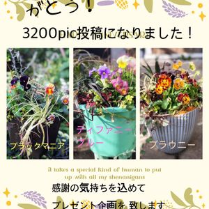 ㊗️3200pic投稿になりました✨⋱⋰ ✨⋱⋰ ✨⋱⋰ ✨⋱⋰ ⋱⋰ ✨⋱⋰ ✨⋱⋰ ✨⋱⋰ ✨ いつもありがとうございます🙏 これからも 変わらぬ御付き合いよろしくです(* ᴗ͈ˬᴗ͈)”✨👩🦰 この度 プレゼント企画として 3つ 寄せ植えを 作りました はじめから 経年魅力のある EGの寄せ植えです! 枯れ葉や枯れ枝いりです! 今夜、 ひとつづつ アップしてみますので、 これは 予告になります ひとつづつの アップの picに 希望があれば コメントください! 締切は 今週末。 ゆるくしています。 どんどん 足し算した 🌿に しっかり根っこが ついてほしいので 発送は 今月末になりますー❣️ 夜遅くなるよりは、と 予告ですが お伝えしました! ありがとうございました😊 よろしくおねがいします イングリッシュガーデン🪴