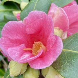 ツバキ・尾張侘助☘️☘️ 優しいピンク色が柔らかな表情のユキツバキ系のお花🌸🌸