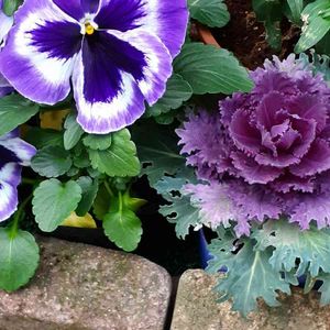 大輪のパンジー❗直径7cm位はあります😆😄 葉牡丹と同じぐらいの大きさです😅