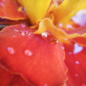 おはようございます😊 雨粒シリーズNo.396 今日はマリーゴルド🌼 🏷️日曜ビタミンカラー♪ 🏷️オレンジ色の花も好き