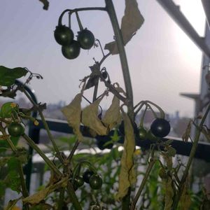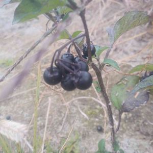 黒っぽい小さな実がつくこの植物は何でしょうか? 葉っぱは枯れてますがトウガラシとかの葉に似ている感じでした。 食べれるのでしょうか?