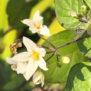 おはようございます👋😃 これもまた、先日の散歩🚶♀️で見つけた野菜モドキ🤭これも花はじゃがいも🥔やナス🍆に似てます。 イヌホウズキで合ってますか⁉️別名バカナスだとか😅 昨日から、散々な名前ばかり。ナス🍆やホウズキに似てるけど、役に立たないからと😅。 こちらも全草にソラニンを含む有毒だそうです😎じゃがいも🥔の芽とかと同じですね😣 イヌホウズキとアメリカイヌホウズキの違いが良く分かりません😅違ってたら教えて下さいね🙏