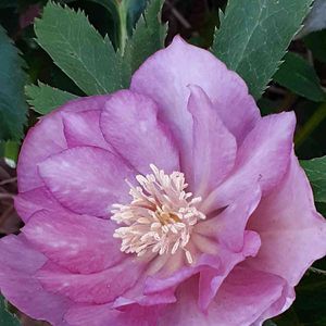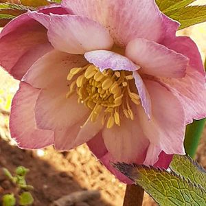 有難いことに一輪目が上を向いて咲いてくれました😆💕 あとから咲いた花は全部下向き😅 咲き始めは桜色、日に日に濃くなって存在感が出てきます。 大きめの花です。 クリスマスローズ投稿の1番目、2番目と同時期に植えた10年選手です。