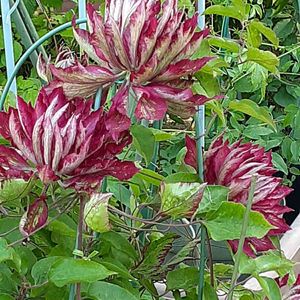 蔓がないタイプの大輪なので菊鉢で支柱を立てて育てています。 凛としていて美しいです🎶