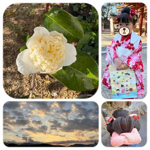 すっごく寒い朝でしたがポカポカ陽気の中、七五三のお参りができました☺️💕 可愛い日本髪桃割れと 庭には清純な白唐子💕
